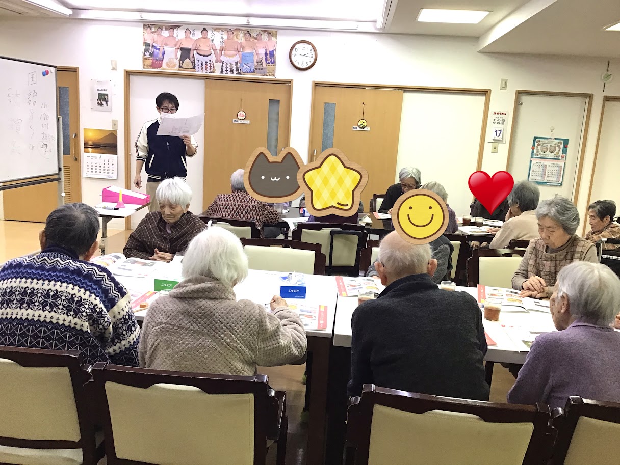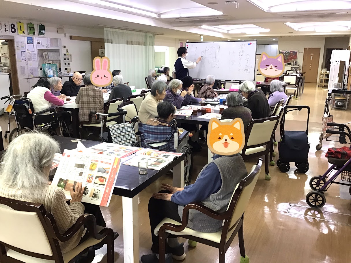 この日の授業担当は筆者でしたが、入居者様があまりにも真剣に聴いて下さるので、ついつい授業内容から脱線して小ネタを喋り過ぎてしまいました〜