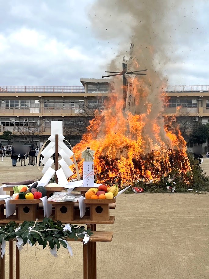 古くは鎌倉時代から続く正月明けの恒例行事でして、しめ縄、門松、書き初めなど縁起物を焼いてその火で餅や三色団子を焼いて食べると健康に良い・・・他にも色々地域によって違うそうですが、ざっと説明すると、こういうお祭りです^_^